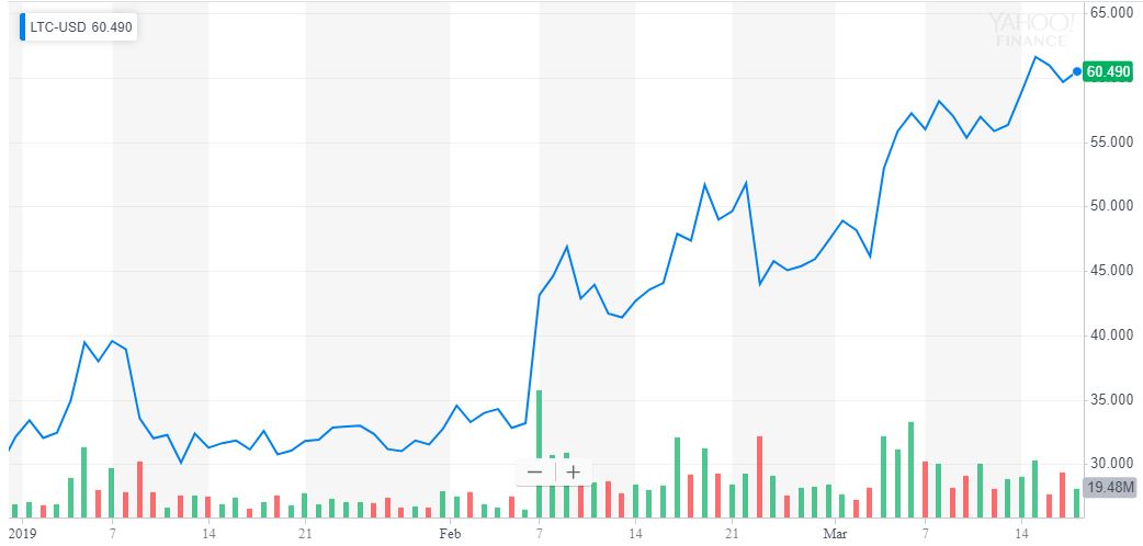 The broader crypto market has been stuck in a narrow trading range over the short-term, but there’s one cryptocurrency whose value has nearly doubled year-to-date, and that’s Litecoin (LTC). The fifth-biggest coin, which is at $60.75, has benefitted from a few high-profile partnerships inked by Litecoin creator Charlie Lee, not to mention a push toward confidential transactions.