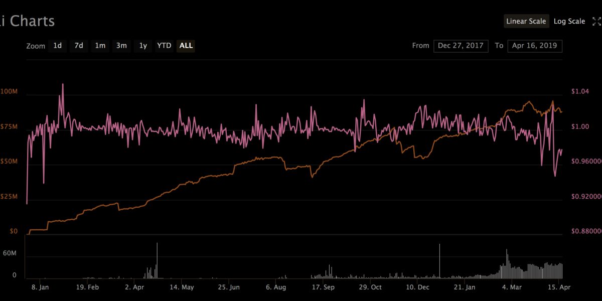 The market cap of DAI fell by about $8 million from April 9th to April 16th with that contraction of supply potentially having an effect on crypto prices.