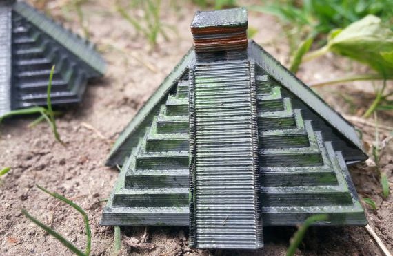 Here are two Mayan Temples as seen at the historical Chichen Itza site in Mexico. These temples are printed with ABS plastic and hand painted. They are perfect for dioramas or as a simple collectable.