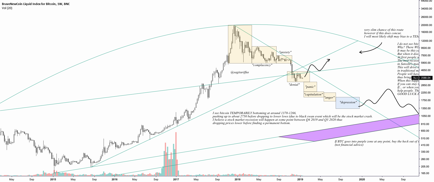 2. was created because of a financial recession but has not experienced one for itself. As much as I would like to believe that will go sub 500… etc. (back to pre 2016 prices), I think there is way too much money already involved and it will never be the low unless there is a black swan event within a black swan event and everyone stops caring about money, which is highly highly unlikely.