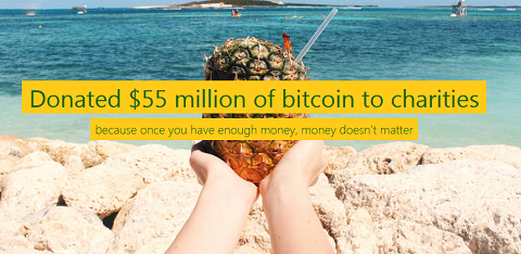 donated 5,104 bitcoins to about 60 charities around the world. Due to the decline in the value of the crypto since the December 2017, the total amount donated was $55.75 million. Some of the include the , Pencils of Promise, and the Internet Archive.