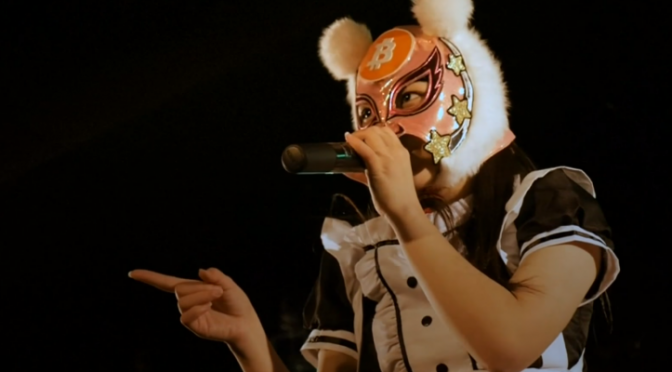 Say hello to the Virtual Currency Girls, the eight-woman pop group derived from the underground music collective. Sporting eclectic outfits of maid uniforms and luchador masks, they prance around the stage belting verses about bitcoin and friends to raise cryptocurrency awareness.