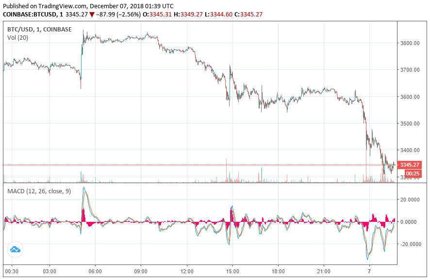 bitcoin had entered the day on , with many fearing that the flagship cryptocurrency’s inability to defend the $4,000 level signaled an impending drop to the $3,000 region. BTC/USD has not broken that next crucial level yet, but the bitcoin price did take a major step toward that level on Friday morning at around 1:25 UTC, when BTC dove to a new yearly low at $3,311 after trading as high as $3,849 less than 24 hours prior. As of the time of writing, BTC/USD was hovering near $3,344 on , representing a single-day decline of just under 10 percent.