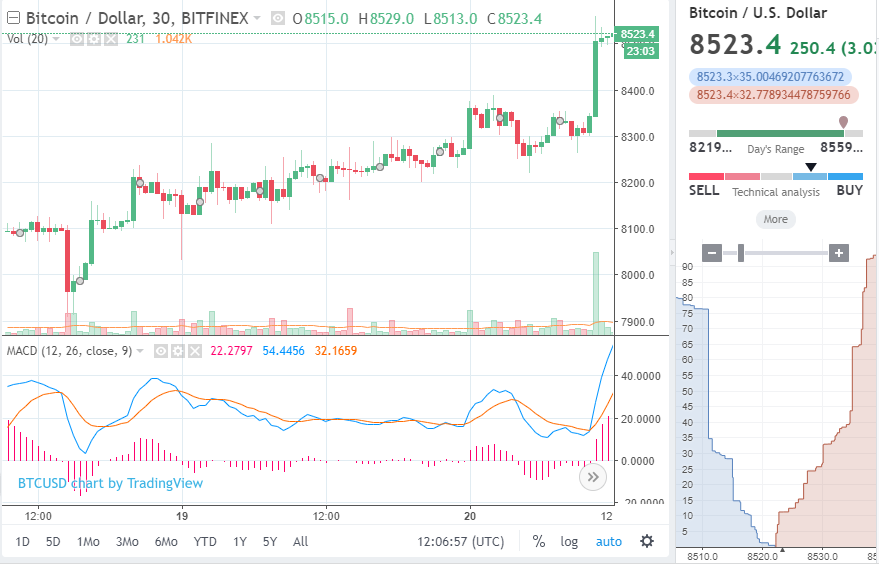 While trading largely settled near the $8,300 level early on Friday, a notable spike saw prices jump from $8,379 at 10:37 UTC to a new monthly high of $8,529 within a 10-minute period.