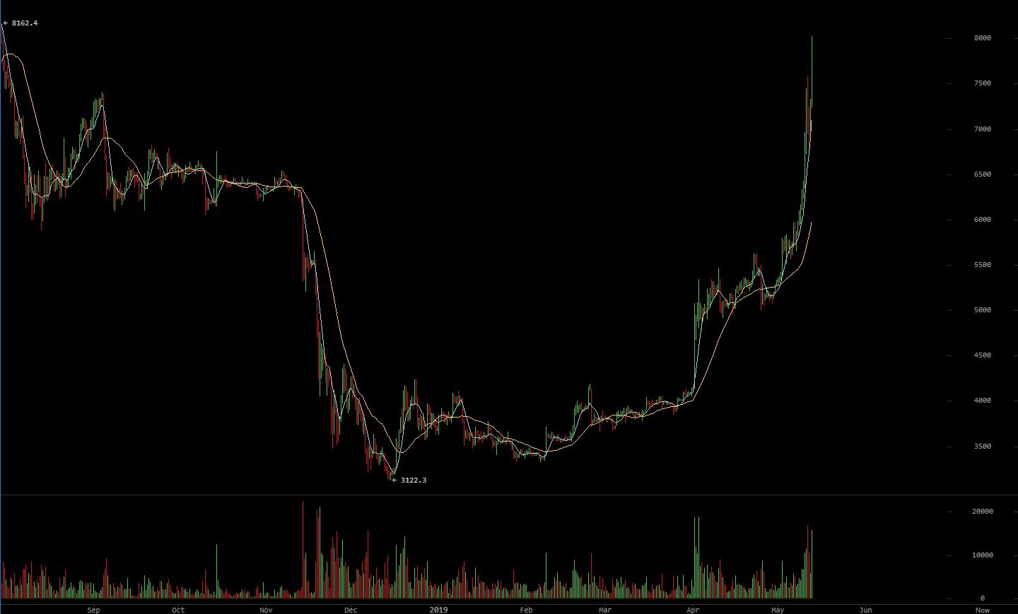 The cryptocurrency market has been in a sustained uptrend for most of 2019, but the bitcoin price has absolutely exploded in May. BTC has now gained 55% in the past 30 days, bringing its year-to-date return to a staggering 113%.