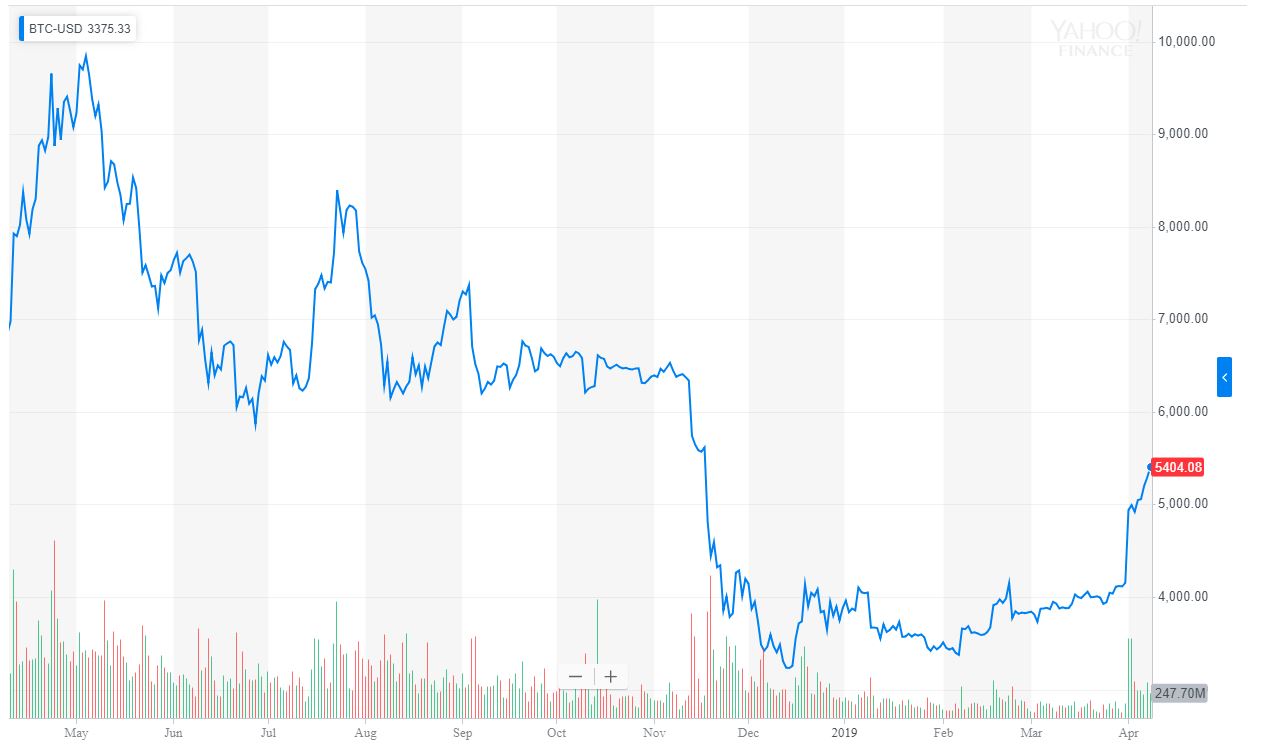 The bitcoin price bounded to a new 2019 high on Wednesday, sneaking within inches of the $5,500 mark midway through the afternoon US trading session.