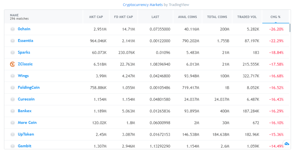 In the past 30 minutes, tokens recorded losses in the range of 10 to 26 percent against the U.S. dollar as BTC retraced by 9 percent.