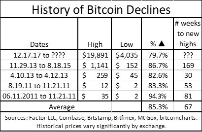 Even if BTC drops to $2,950, an 85 percent drop from its all-time high is only the average loss BTC recorded in the past four major corrections.