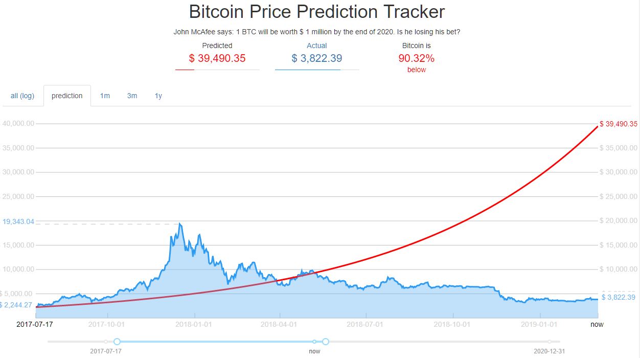 If price increases were in line to reach $1 million by the end of 2020, one bitcoin today should be worth over $39,000, according to that measures the progress of John Mcafee’s to cut off his own member should it not reach seven digits by the end of 2020.