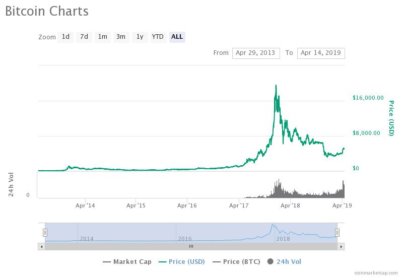 Although bitcoin experienced an 80% correction in 2018, it is still up substantially in the past several years (source: coinmarketcap.com)