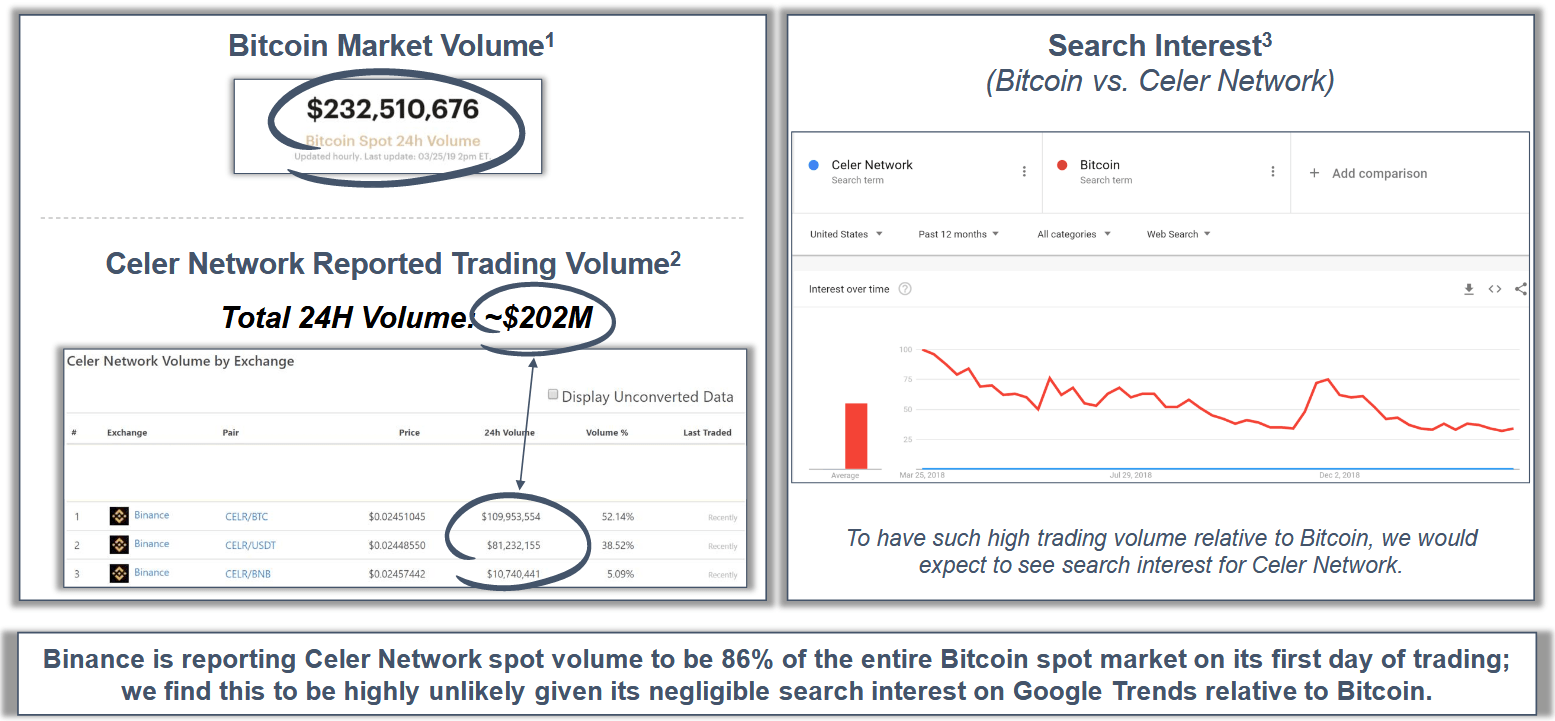 The same goes for Launchpad tokens, such as Celer Network, which showed comparable trade volume to bitcoin despite no sign of interest showing up on Google Trends.