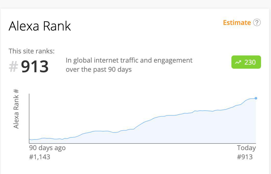 Even the embattled Bitfinex, subject to an ongoing lawsuit over $850 million in missing funds, has upped its popularity, currently sitting within the top 5000 sites.
