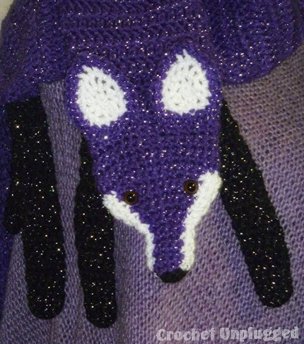 A purple with silver glitter WTF!…Wrap The Fox faux fox, foxy stole/scarf. A cool, funky, and hip winter accessory to add to your wardrobe for a classy or casual appeal. The WTF!…Wrap The Scarf is hand crocheted in a next-to-skin soft acrylic yarn, and may be made in all available colors. Please specify your preference in made-to-order purchases for different choice if ordering custom-made.