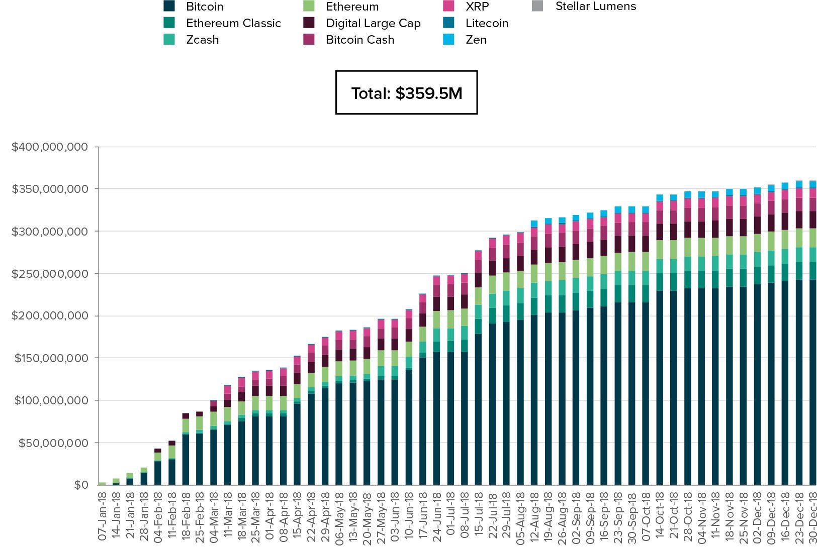 Graphic from Grayscale shows overall investments and diversification of assets rose hand-in-hand throughout 2018