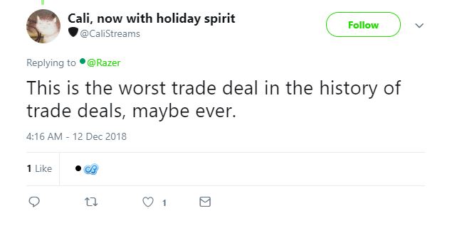 “This is the worst trade deal in the history of trade deals, maybe ever,” wrote one user, channeling his or her inner . “Seriously? This is an early April fools joke right?” asked another.
