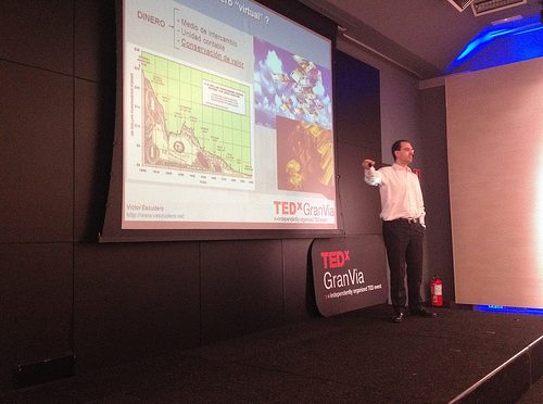 Víctor Escudero hablando sobre "¿Nueva? Economía" y bitcoin en TEDxGranViaSalon