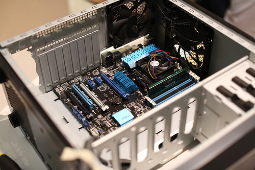 Brent and I assembling our mining rig with two ASUS Radeon R9 290s. Watch the time-lapse of the assembly