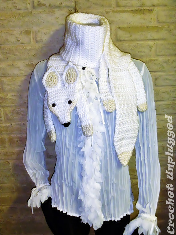 READY-TO-SHIP ~ Snow White (Wrap The Fox) faux fox, foxy stole/scarf. A cool, funky, and hip winter accessory to add to your wardrobe for a classy or casual appeal. WTF! scarf has been hand crocheted with an acrylic yarn.