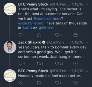 The crux of the complaint surrounds not only the XRB hack but Nano’s relationship with the exchange on which the security breach occurred, BitGrail. The complaint alleges that Nano promoted the security reliability of the BitGrail platform for trading XRB, and traders took their word. As you can see in the below exchange between an investor and Nano iOS developer Shapiro, while investors grew suspicious, the Nano team was none the wiser of what was truly going on behind closed doors at BitGrail.
