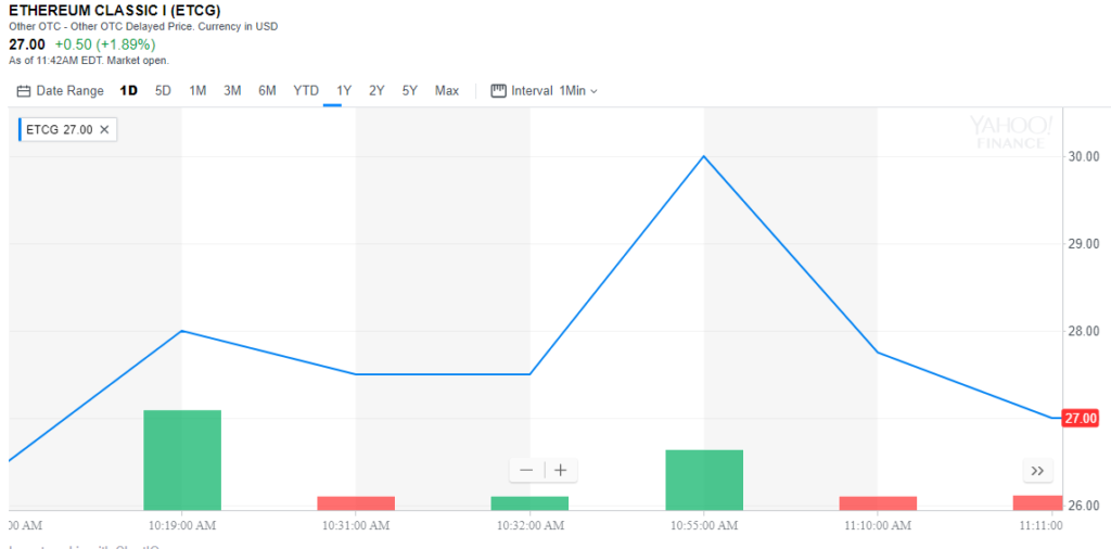 ETCG has thus far been thinly-traded, which is unsurprising given that this is its first day on OTCQX. So far, less than 2,400 shares — worth approximately $64,000 — have changed hands. The bitcoin Investment Trust, meanwhile, has seen approximately $12.5 million in trading volume.