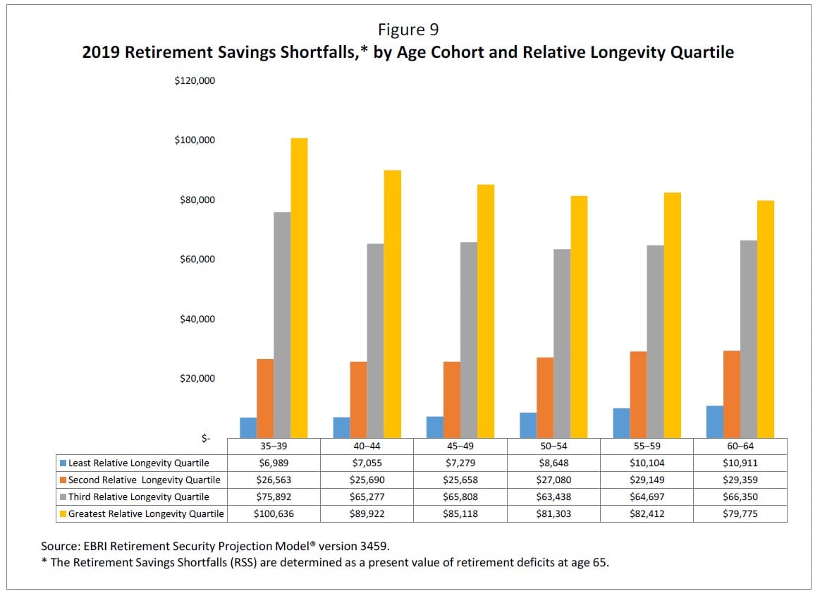 - The results also demonstrate the extreme importance of longevity risk in simulating Retirement Savings Shortfalls. Overall, the average retirement deficit for those in the longest relative longevity quartile is 10.2 times the average retirement deficit for those in the shortest relative longevity quartile.