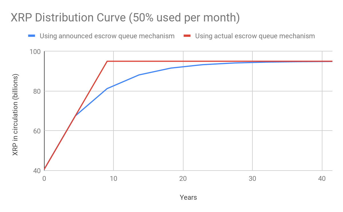 This differing method of re-escrowing funds functionally accelerates the release of funds by as much as 21 years, depending on how many XRP Ripple liquidates each month.