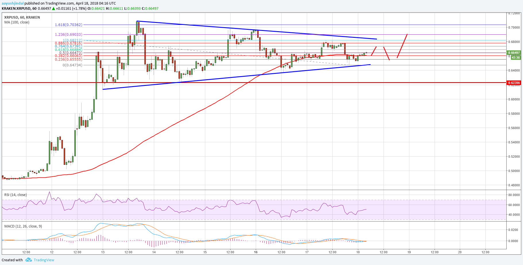 There was no major move above the $0.6800 level in Ripple price against the US Dollar. The price remained in a tight range and it seems like it is preparing for the next move. The recent low was formed at $0.6473 before the price moved back above $0.6500. It traded above the 23.6% Fib retracement level of the last drop from the $0.6821 high to $0.6473 low.