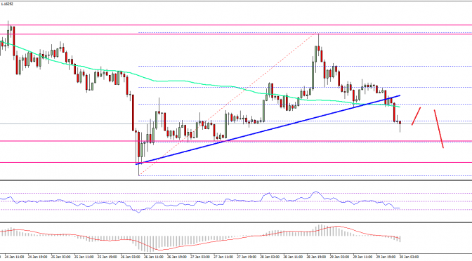 Should there be a break and close below $1.1250, there can be a test of the $1.0000 handle. On the upside, the broken support near $1.2100 and the 100 hourly SMA are likely to prevent recoveries.
