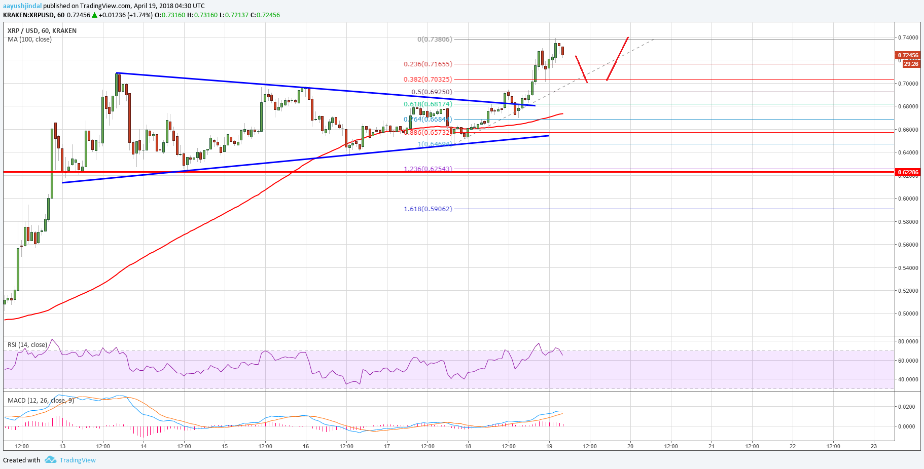 Ripple price broke to the upside against the US Dollar and bitcoin. XRP/USD is now positioned nicely for more gains above the $0.7200 level in the near term.