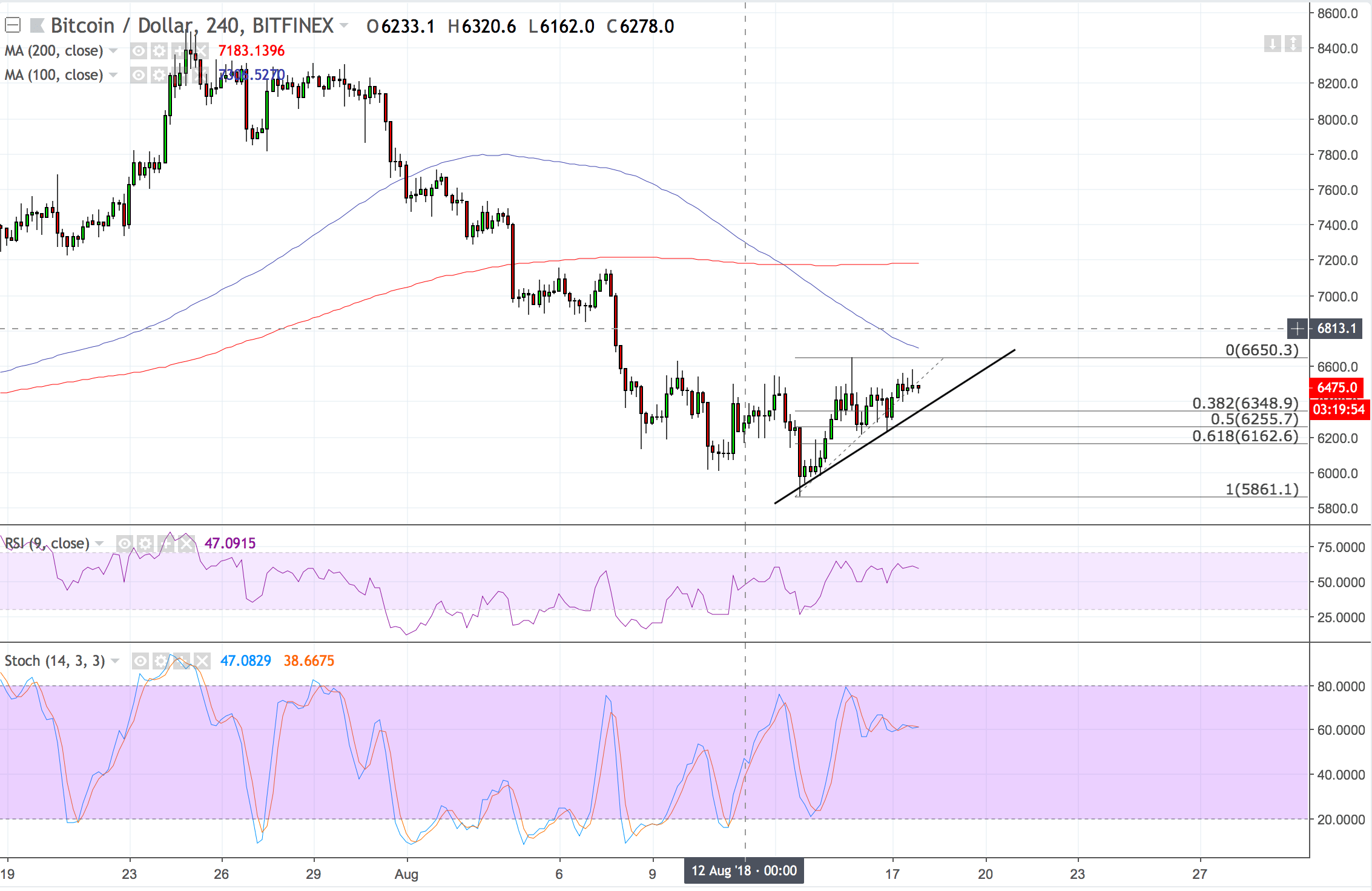 bitcoin is stuck inside a narrow range below the $6,500 level, failing to extend its upside momentum like ripple. The BTC/USD continues to form a short-term ascending line, which could be broken towards either side as the medium-term bias conflict intensifies. A move beyond $6,550 could still influence a short run towards $6,650, but a strong bull trend can only be confirmed should the $7,000-upside is achieved.