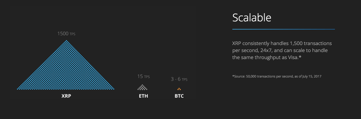 Ripple’s transactions per second compared to Ethereum and bitcoin | Source: