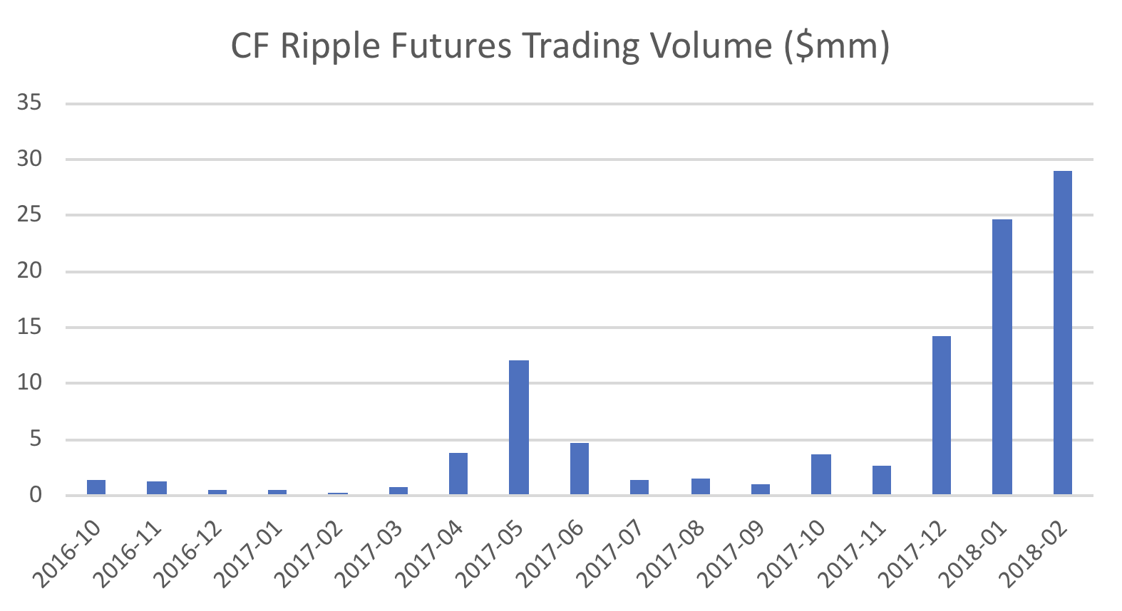 For instance, the volume of XRP futures, which the company officially launched in October 2016, were relatively flat from month to month until March 2017.