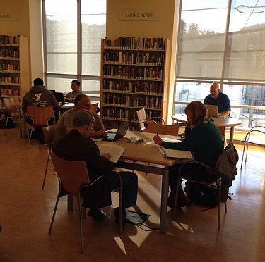 I don’t think it was because he was looking at Heinlein (they only have Strangers in a Strange Land), but it was just an area with some tables and chairs he coins have been working on a laptop The library spokesperson could have said he was arrested in Romance or large print (which are on either side)