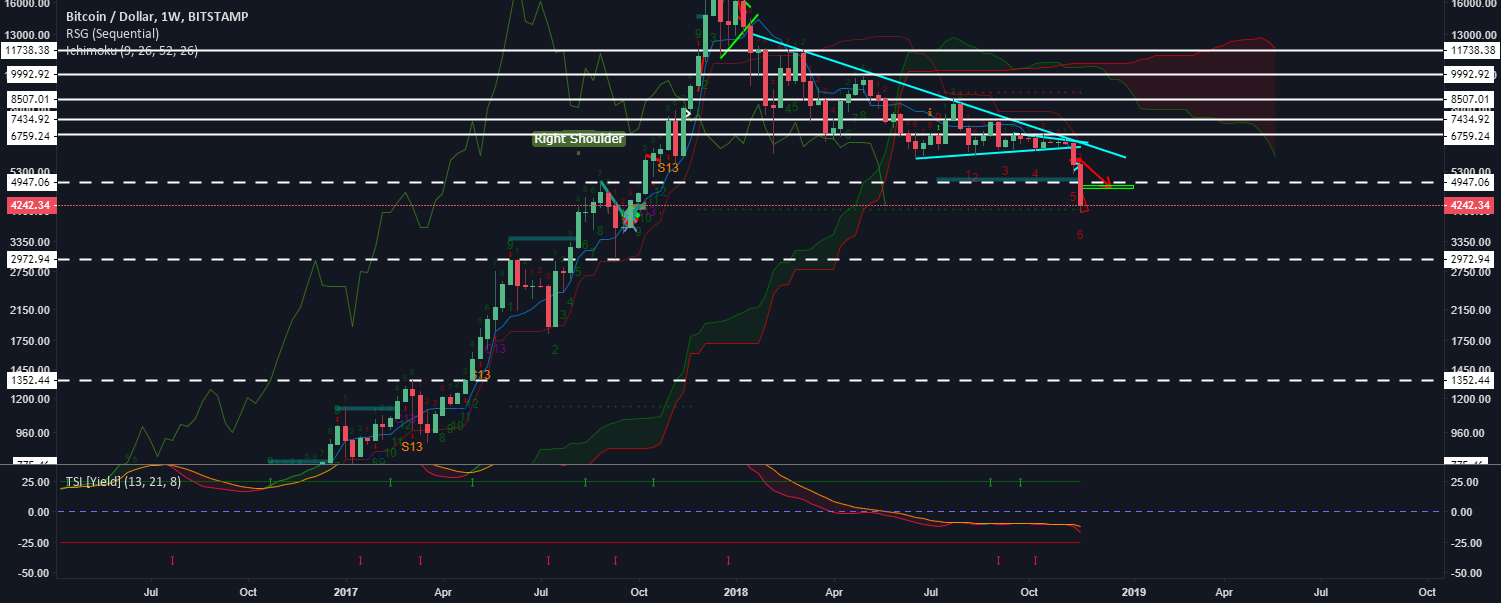 The outlook for is not very good at the moment, the montly chart and the daily are the only timeframes supporting at least a short term reversal. Continue hold if you wish, Its too late to sell at this point. In the case we break down, the next level to look for a reversal is around 3000$ USD