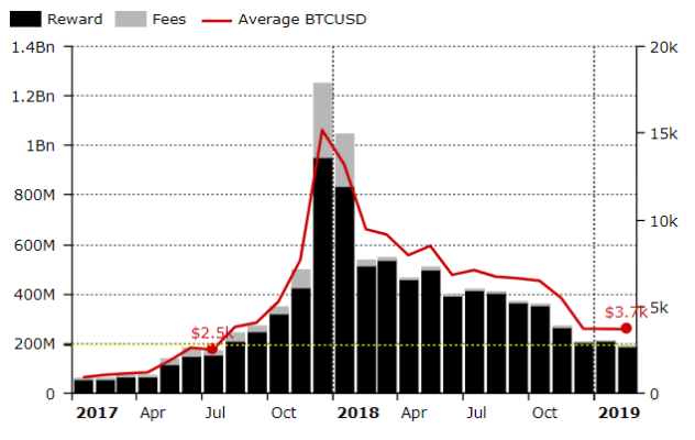 Im Februar 2019 konnte selbige lediglich etwa 200 Millionen US-Dollar einnehmen. Die Umsätze korrelieren also stark mit dem bitcoin-Kurs. Dies geht aus der neuesten Analyse von hervor.