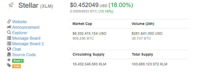 This day seemingly keeps getting better and better for all cryptocurrency markets. More specifically, the Stellar price is also making some notable gains as we speak, which is rather interesting. Thanks to a solid 18% gain, the Stellar price is back up to $0.45. It almost seems like ages ago since we last saw this value, even though the Stellar price hit that same value just four days ago.