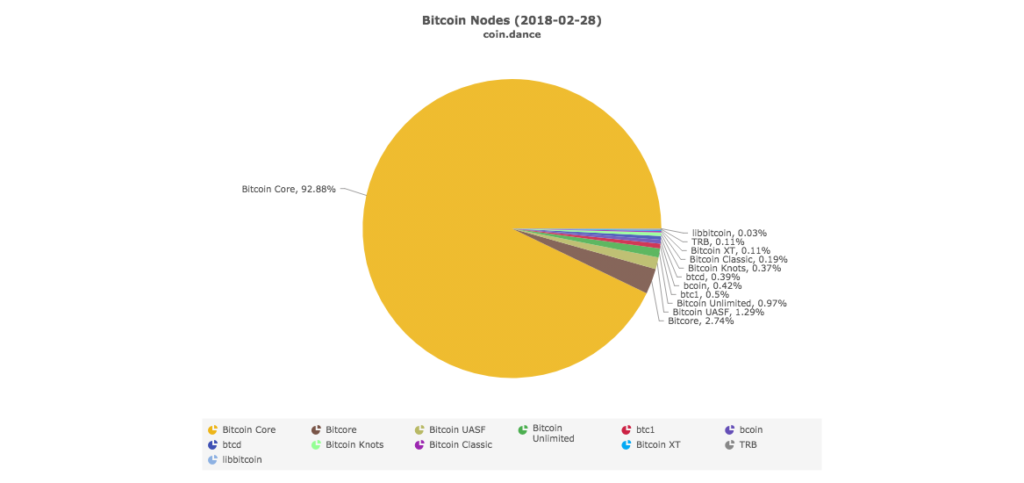 The bitcoin network, meanwhile, has overwhelmingly embraced bitcoin Core software, which comprises almost 93% of the total number of available clients. What’s more, nodes are now increasingly springing up in other no longer as concentrated in just Europe and the U.S.
