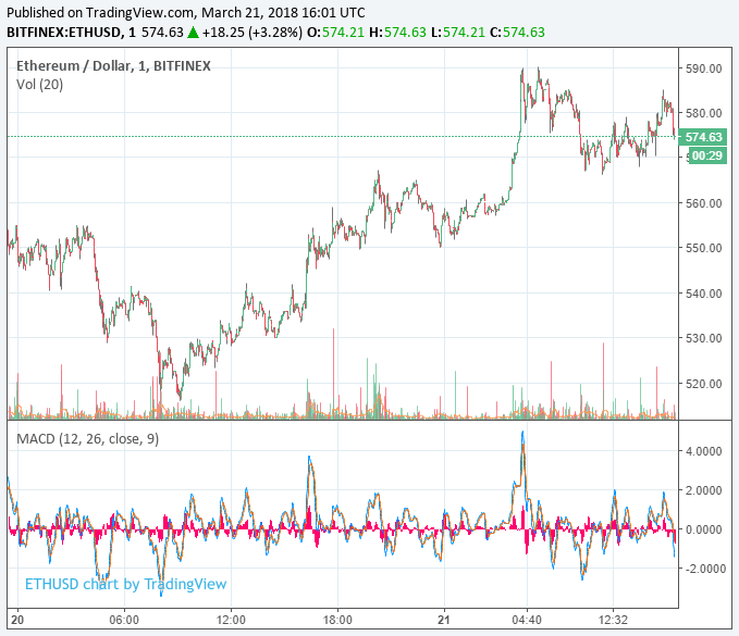 Meanwhile, the posted an index-matching 7.5 percent increase after lagging the average market return over the previous several days. The Ethereum price is now trading at $574 on Bitfinex, providing the second-largest cryptocurrency with a $57.4 billion market cap.