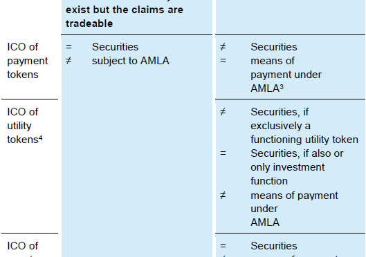The press release on the guidelines also provides useful information. The Swiss regulator highlighted that they would focus “on the underlying purpose of the tokens” and that the tokens were “tradeable and transferable.”