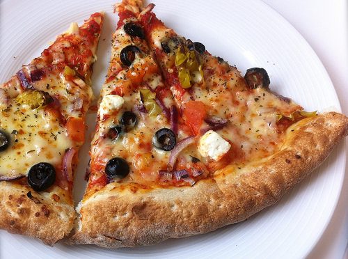 Tasty bitcoin pizza close-up.
