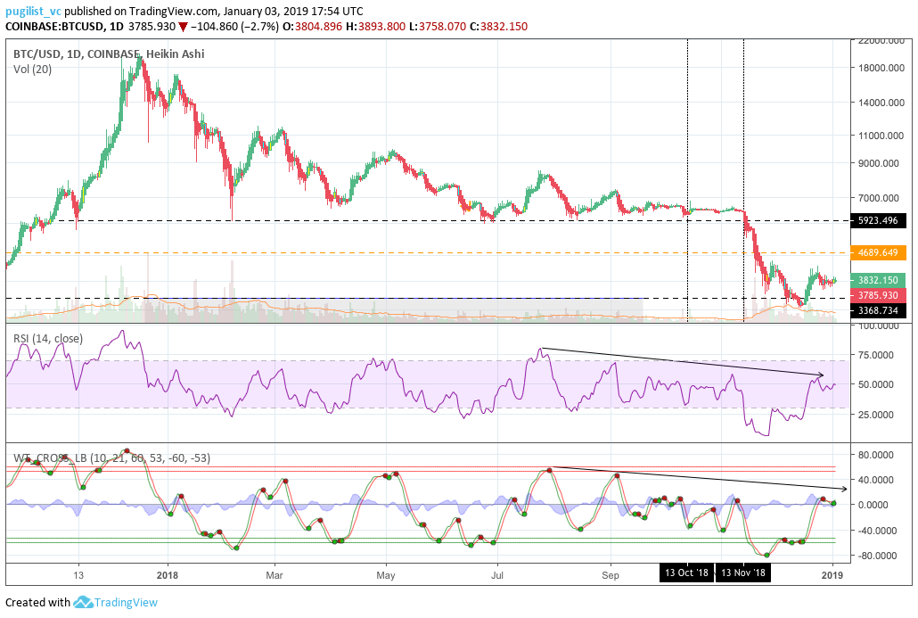Since the end of 2018, price action has been demonstrably negative, which surprised many expecting the end of Q4 historical “pump” in prices.