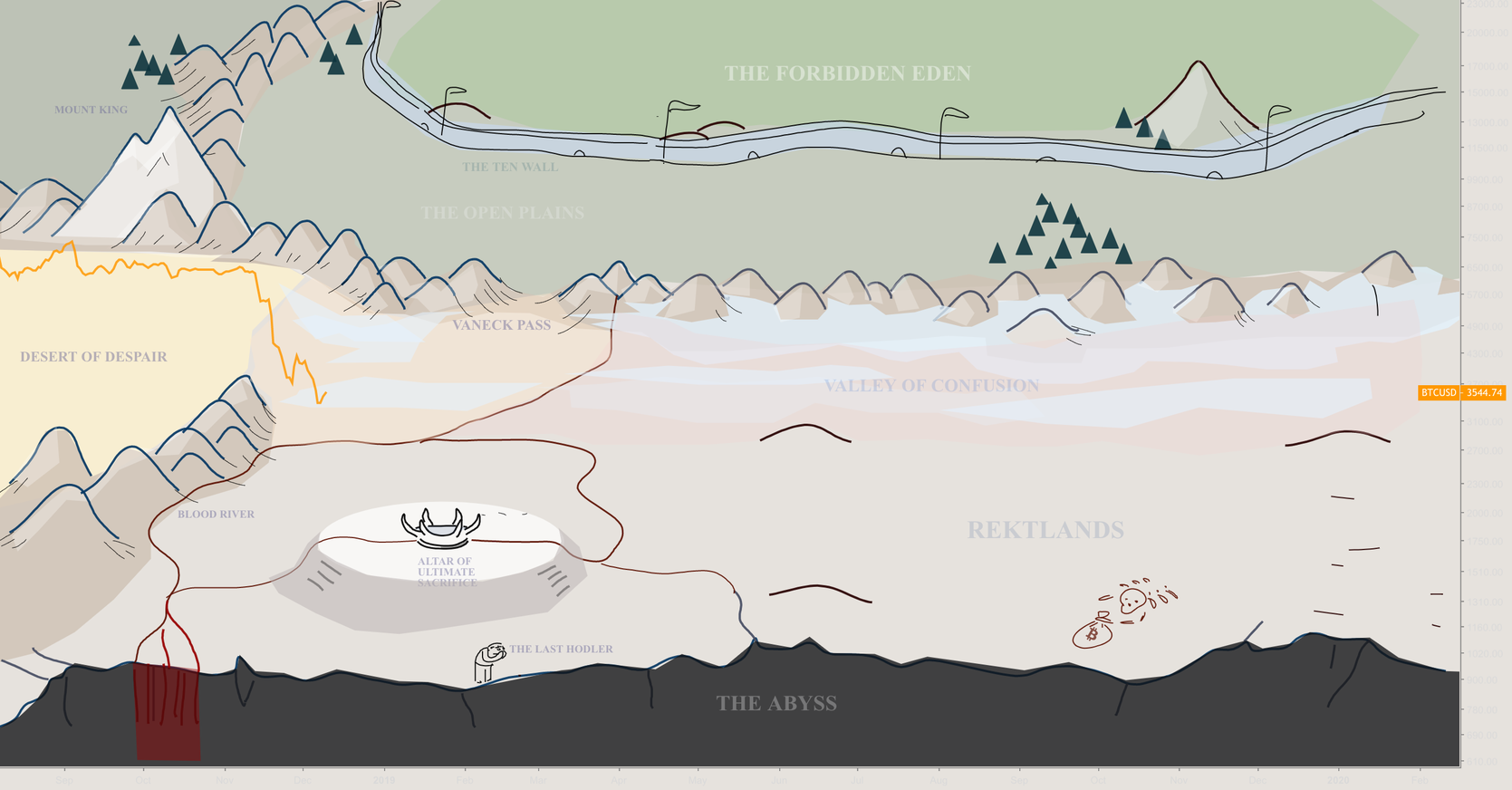 Bit followed the long path at the feet of Mt King, too tired to climb, and still determined enough not to give in the of the desert of despair. He walked straight for as long as he could. Unfortunately, the road came to an abrupt end. A wall of rocky mountains stood firm ahead, forcing Badger to change directions. His only option was to head south, getting dangerously closer to the dreaded Reklands. home of the infamous Lord Rekt.