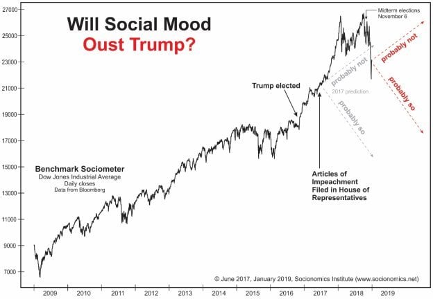 What the Mueller investigation will ultimately reveal remains a big question. But social mood may play a bigger role in Trump’s fate than the facts. For that, watch the stock market closely, our best reflection of the trend of social mood.