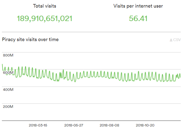 Last year the company reported that there were roughly 300 billion pirate site visits in 2017. This number has now been readjusted to 206 billion. According to MUSO, this is because one of their data providers significantly scaled down mobile visit estimations.