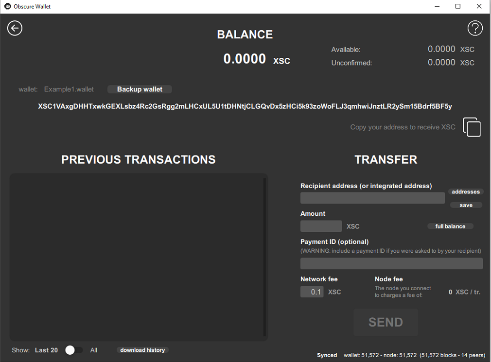 Green: your file name. Yellow: your public XSC address. Red: your mnemonic seed. IMPORTANT: It is necessary that you copy and them in a secured place.