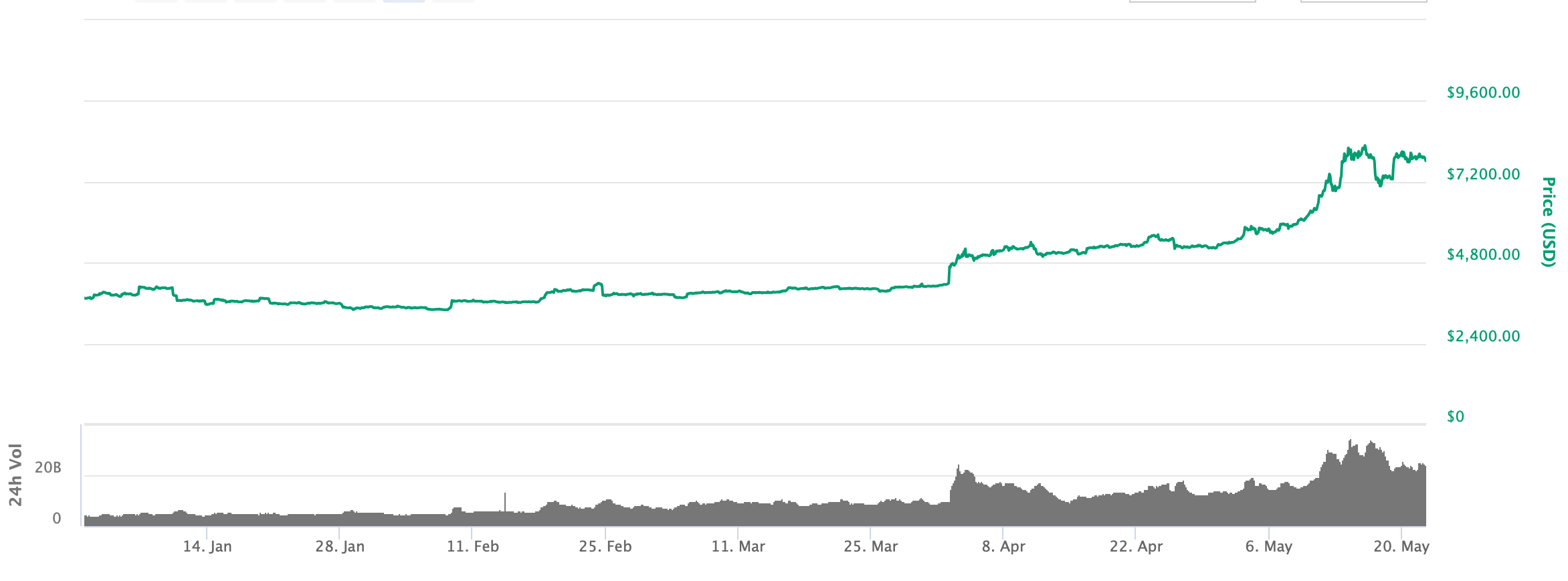 bitcoin’s run to $8,000 should trigger a pullback to the $7,000 range, according to Grisanti. Source: CoinMarketCap