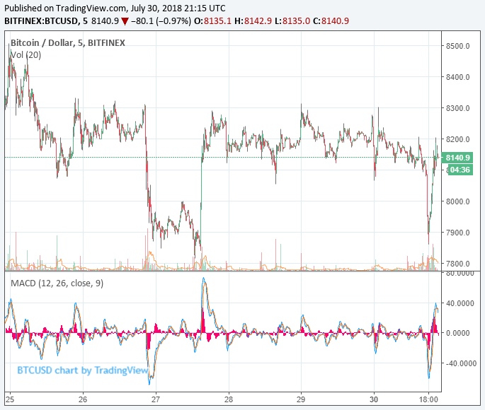 Within 12 hours after its drop, the bitcoin price recovered from $7,800 to $8,250 in a much shorter period. The surge in volume and demand for bitcoin on July 28 caused the price of BTC to increase by 5 percent within 50 minutes.