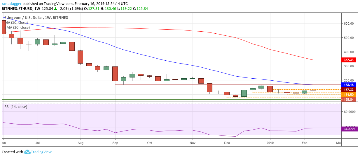 The pair has largely been stuck in a tight range of $5.4808–$10 recently. Previously, the cryptocurrency was stuck in a range for 13 weeks, from mid-August to mid-November 2018, before a breakdown happened.