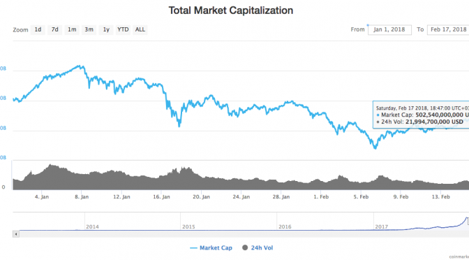 After a relatively to the month in the crypto market, the total market cap of all cryptocurrencies has again broken $500 bln today, Feb. 17, according to . The total market cap is currently around $502 bln at press time.