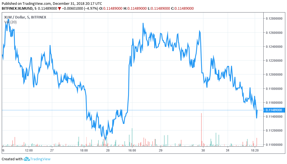 At the same time, Stellar had dropped a full penny from its 5-day high of nearly 13 cents at time of writing.
